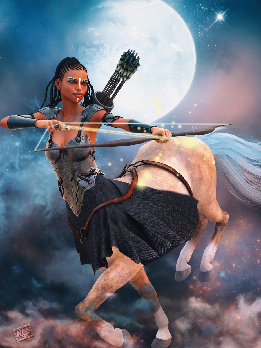 I meant to post this during Sagittarius season, but with the busy holidays time got away from me. At recent Art show, someone pointed out that I should do both genders for each horoscope, so going forward, expect to see two pictures for each Horoscope. When I get a chance I will create a Male Libra and female Scorpio. For now enjoy Sagittarius, the Archer.