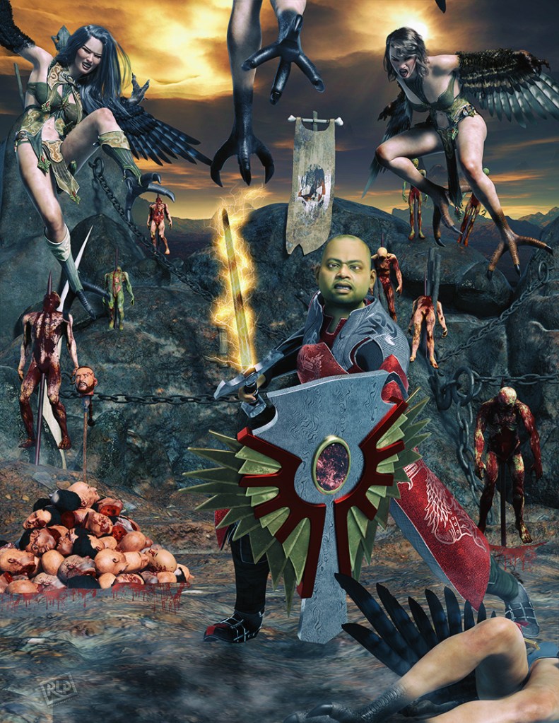 For my birthday, I draw myself as a Paladin fighting the harpies of old age.  lol Enjoy