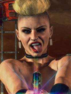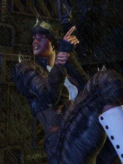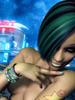 While in the Bar Dark Talon admires Subject Zero aka Jack’s Tattoos. Dark Talon is a Sith Lord from the Star Wars Series and Jacks is Human Biotic from the Video Game Mass Effect.
