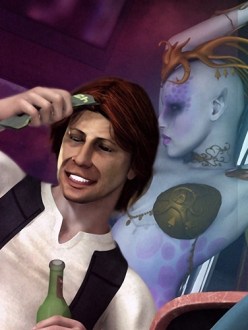 Han Solo and Captain Kirk decided it would be fun to take their friends Luke Skywalker and Mr. Spock to the strip club.